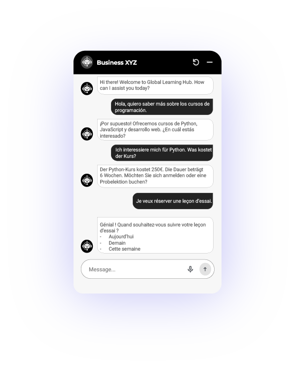 Do your customers use your native language to communicate? No problem at all, our AI Agents can communicate in more than 50 languages from all over the world.