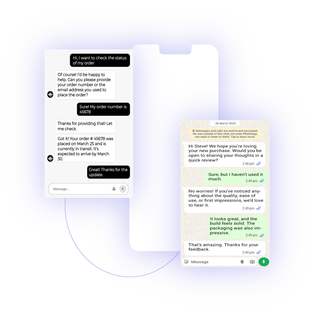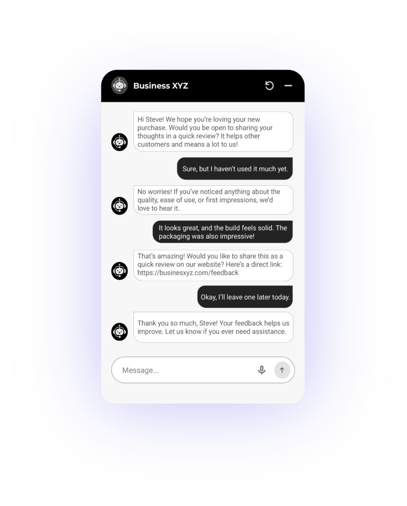 Our AI Agents automatically encourages the customers to provide feedback via automated surveys or review prompts.