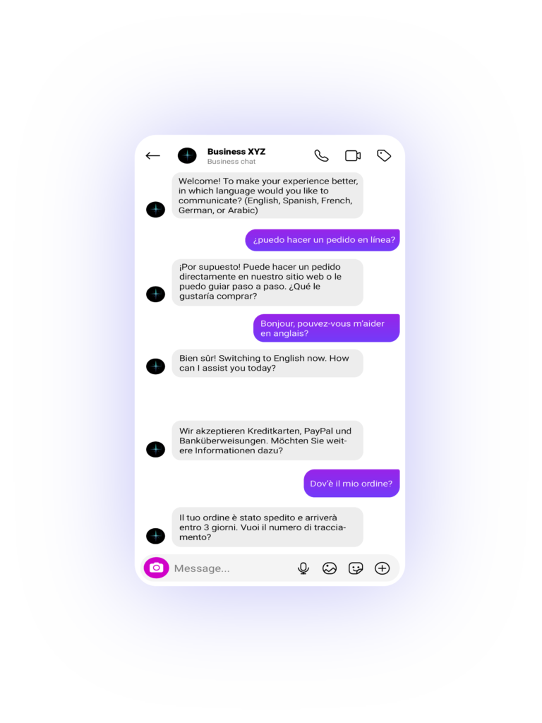 Do your customers use your native language to communicate? No problem at all, our AI Agents can communicate in more than 50 languages from all over the world.