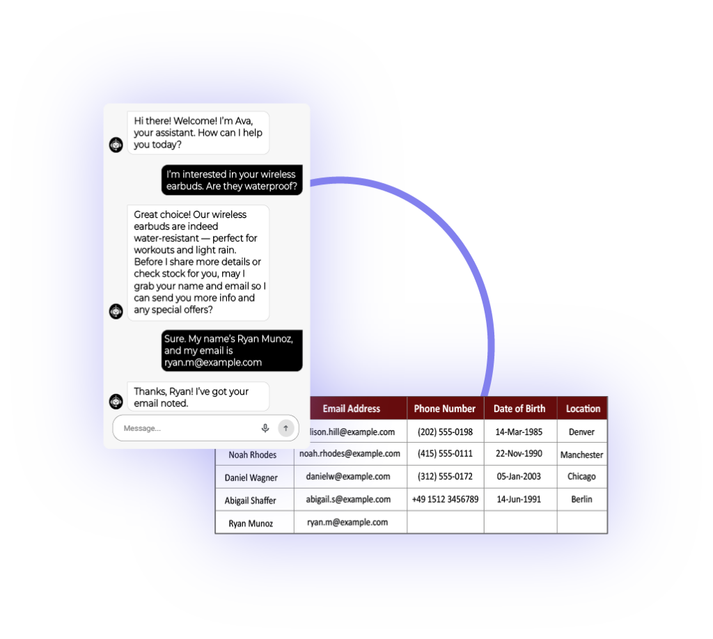 With our AI agents, you don’t have to worry about missing out on leads. Our agents instantly interact with every lead and collect all of their relevant data and store in your data-base.