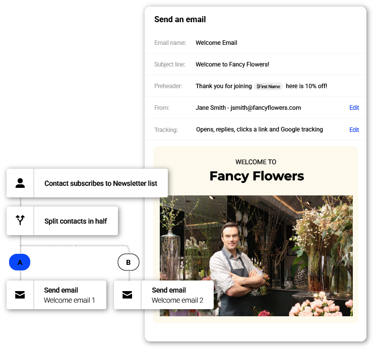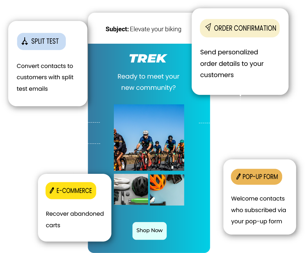 Automatically test different subject lines, designs, or content to identify top performing emails.