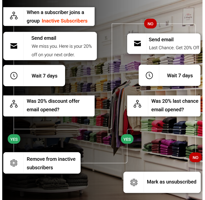 Always stay on top of your customers minds. Automatically send re-engagement campaigns, loyalty rewards, and follow-ups to inactive customers.