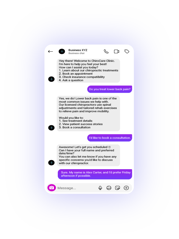 Get AI-powered automation solutions for your medical practice. Boost Appointment Bookings, Simplify Patient Communication, Reduce No-Shows, Improve Patient Satisfaction,  Enhance Retention Rates, and Save Time for Your Healthcare Team.