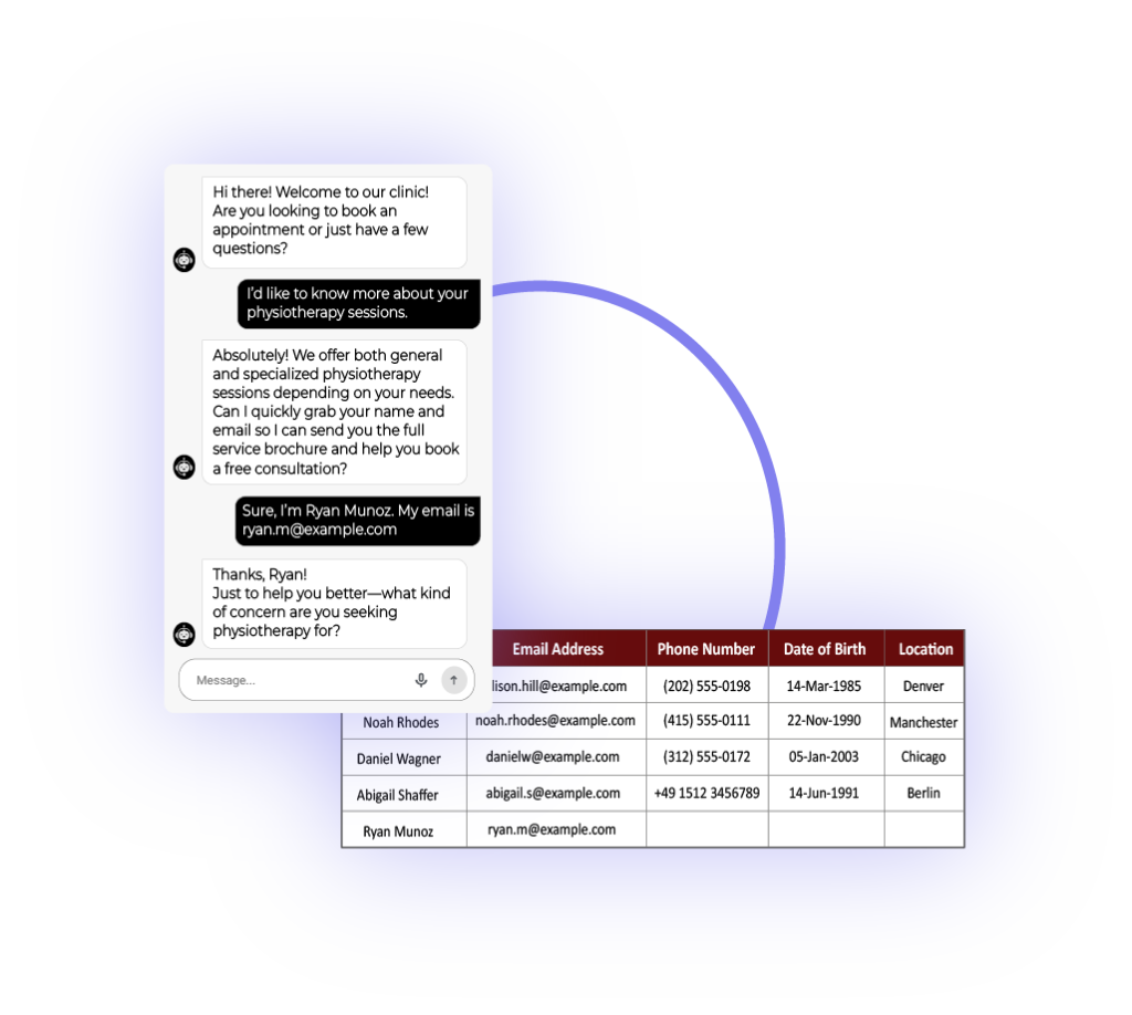 With our AI agents, you don’t have to worry about missing out on leads. Our agents instantly interact with every lead and collect all of their relevant data and store in your data-base.
