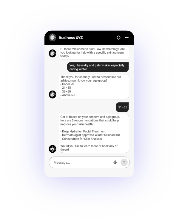 With the help of AI Agents, deliver personalized treatment suggestions, skincare routines, or service recommendations based on each patient’s symptoms, history, and preferences instantly and across channels.