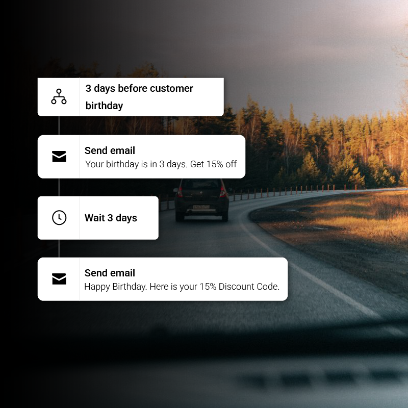 Personalized emails build loyalty, stand out, and keep your brand top of mind. Celebrate your clients birthdays or anniversaries with automated emails! Don’t forget to offer them a special discount to increase your revenue.