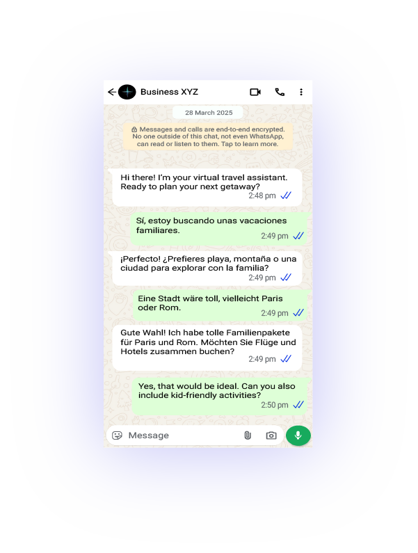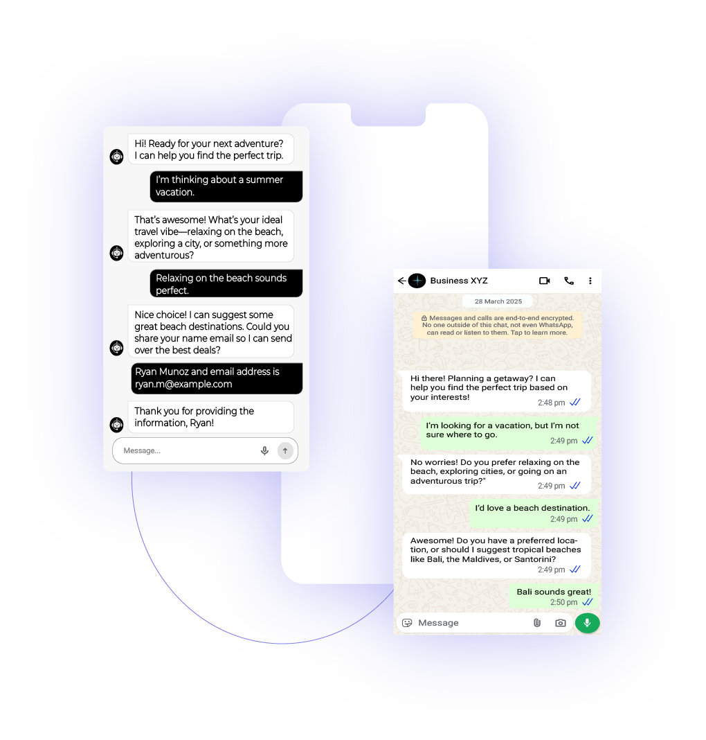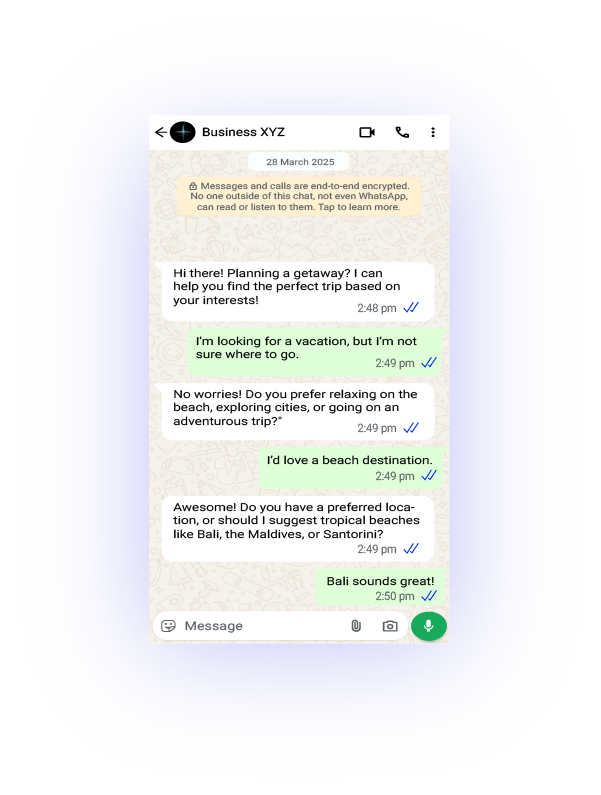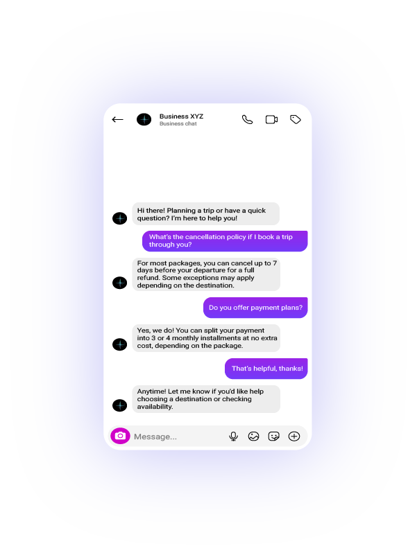 With the help of AI Agents, offer round-the-clock support to answer travel inquiries, share destination details, assist with bookings, and provide real-time updates—across WhatsApp, your website, Instagram, and more—without overwhelming your support team.