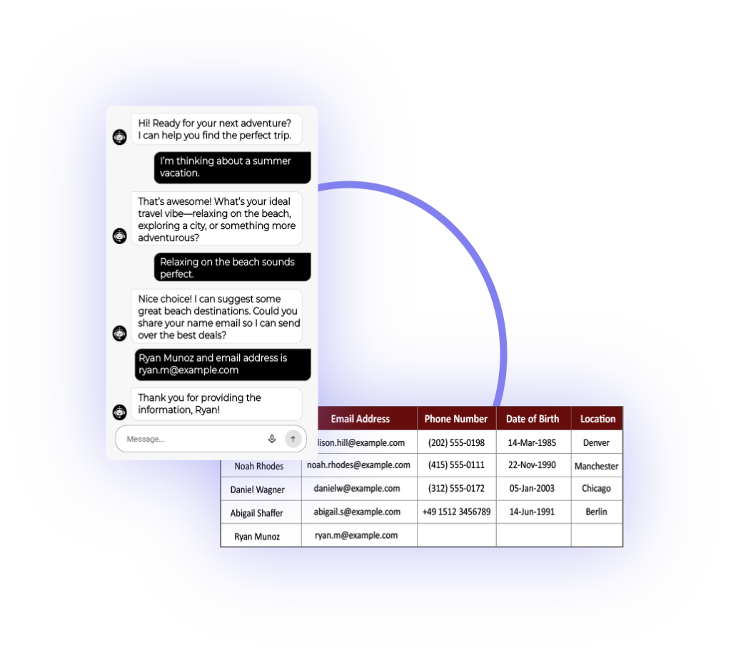 With our AI agents, you don’t have to worry about missing out on leads. Our agents instantly interact with every lead and collect all of their relevant data and store in your data-base.